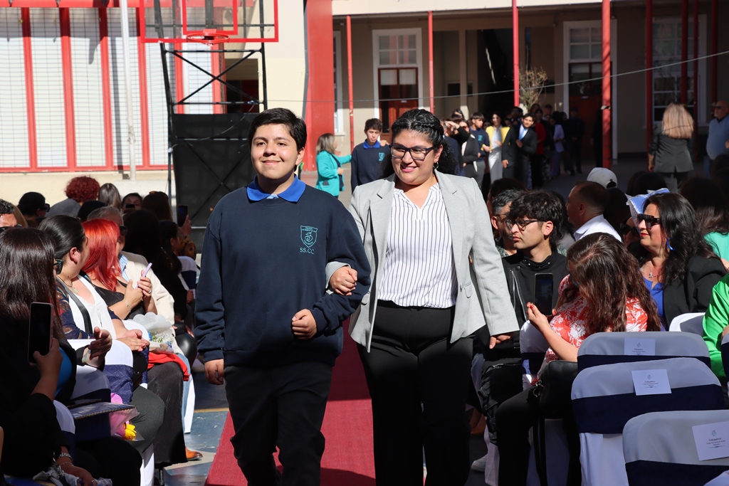 Recordó un poema del Padre Esteban Gumucio, que los diamantes se pueden encontrar en cualquier lado. “Nosotros trabajamos con una población bastante vulnerable, son diamantes digo yo que son opacos, y es nuestro deber sacarles brillo, porque en esencia son diamantes. Hago un llamado a todos nuestros docentes y asistentes de la educación a comprometerse con mayor fuerza, a pesar de que ya están tremendamente comprometidos, a dar un poco más, siempre es posible hacer las cosas un poco mejor, porque nos debemos a nuestros estudiantes, nos debemos a esos jóvenes que buscan en nosotros, en nuestro colegio un mejor futuro; a esa familia que busca en nosotros, en nuestro colegio un futuro más prometedor para cada uno de sus hijos. Esa es la invitación, trabajemos juntos, trabajemos cohesionados, miremos adelante, que siempre es posible hacer las cosas mucho mejor de lo que estamos haciéndolo hasta este minuto. Un abrazo para Bruno y para todos nuestros estudiantes”.