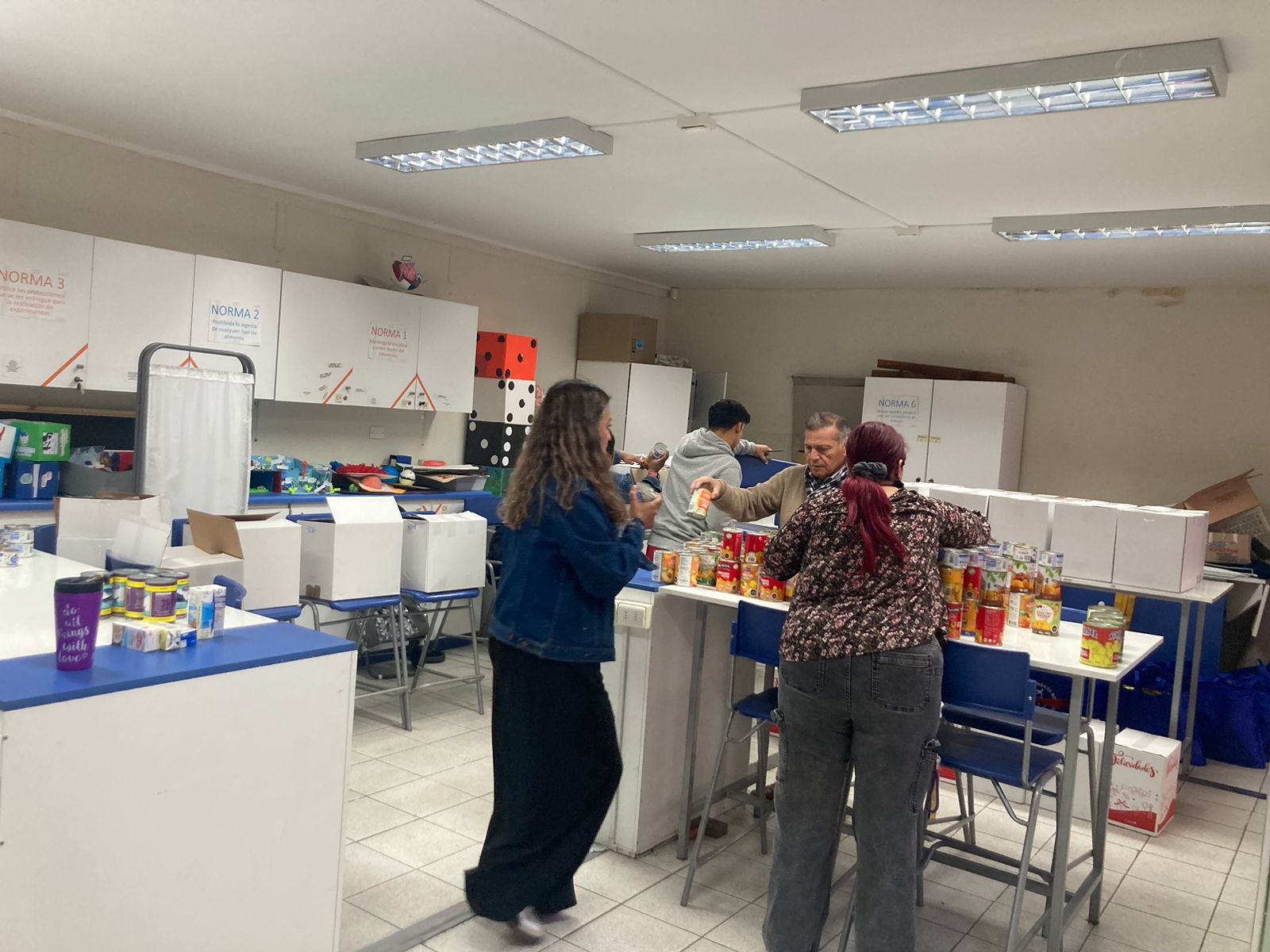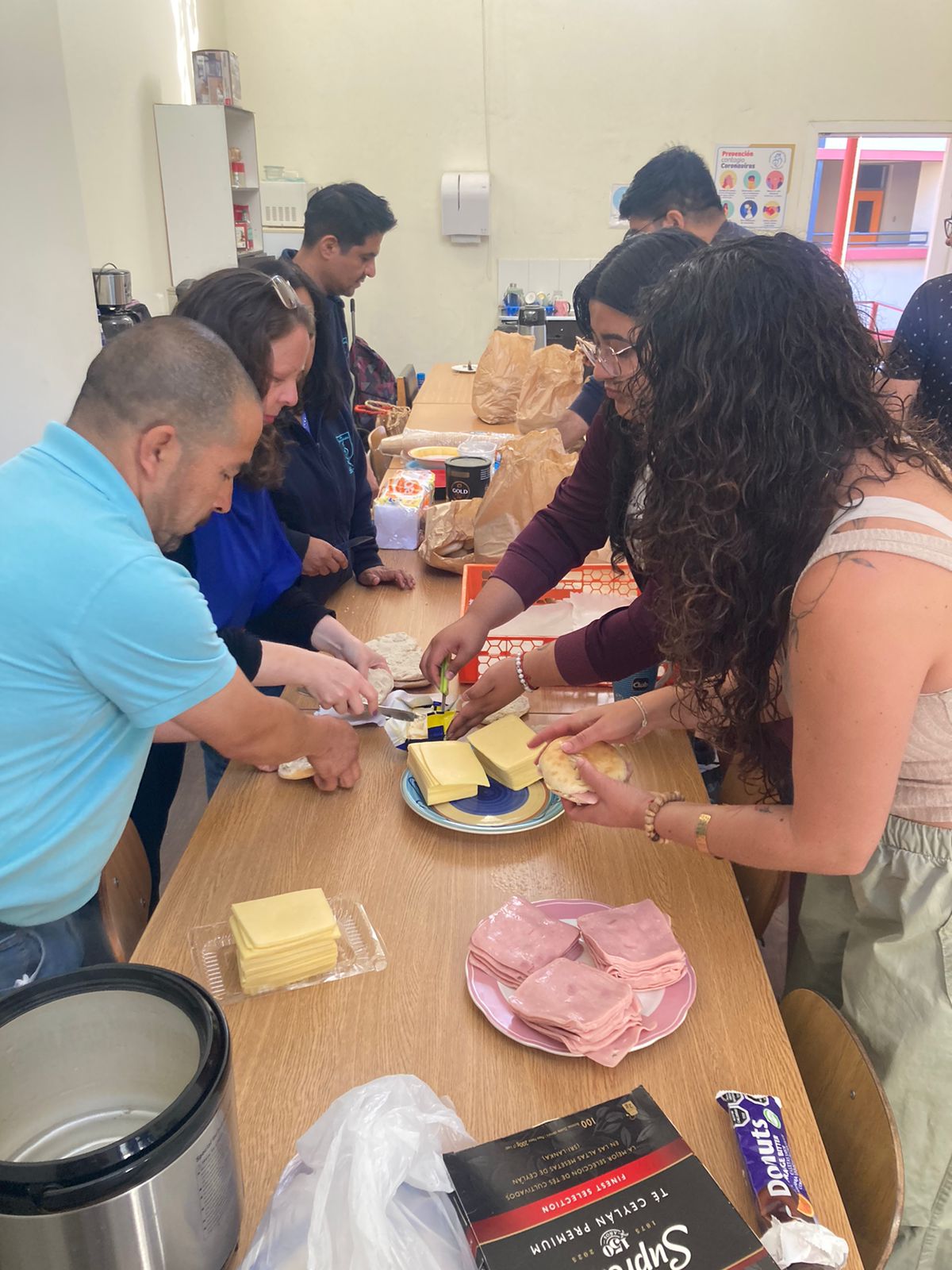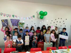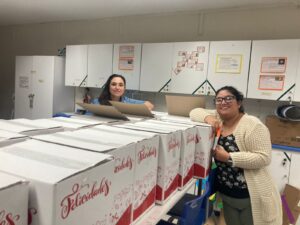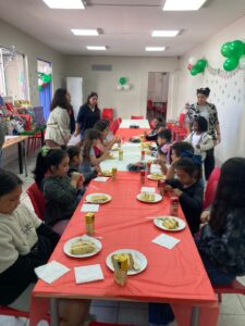 Durante la mañana, nos dividimos en cuatro servicios: Preparación de Canastas Navideñas, Celebración de Navidad para un grupo de niños y niñas de nuestro colegio, entrega de desayunos a hermanos y hermanas en situación de calle y otros prepararon un momento de compartir para el personal.