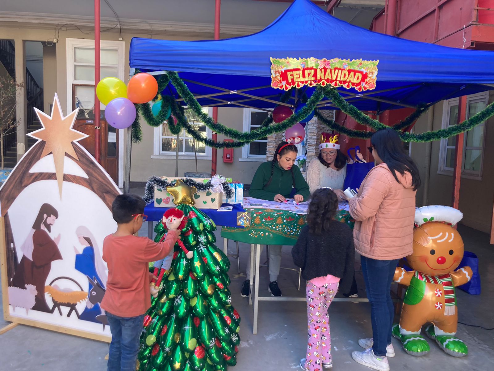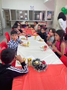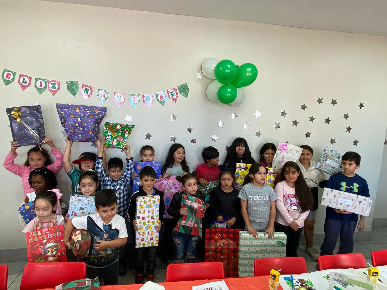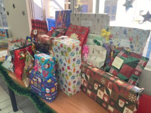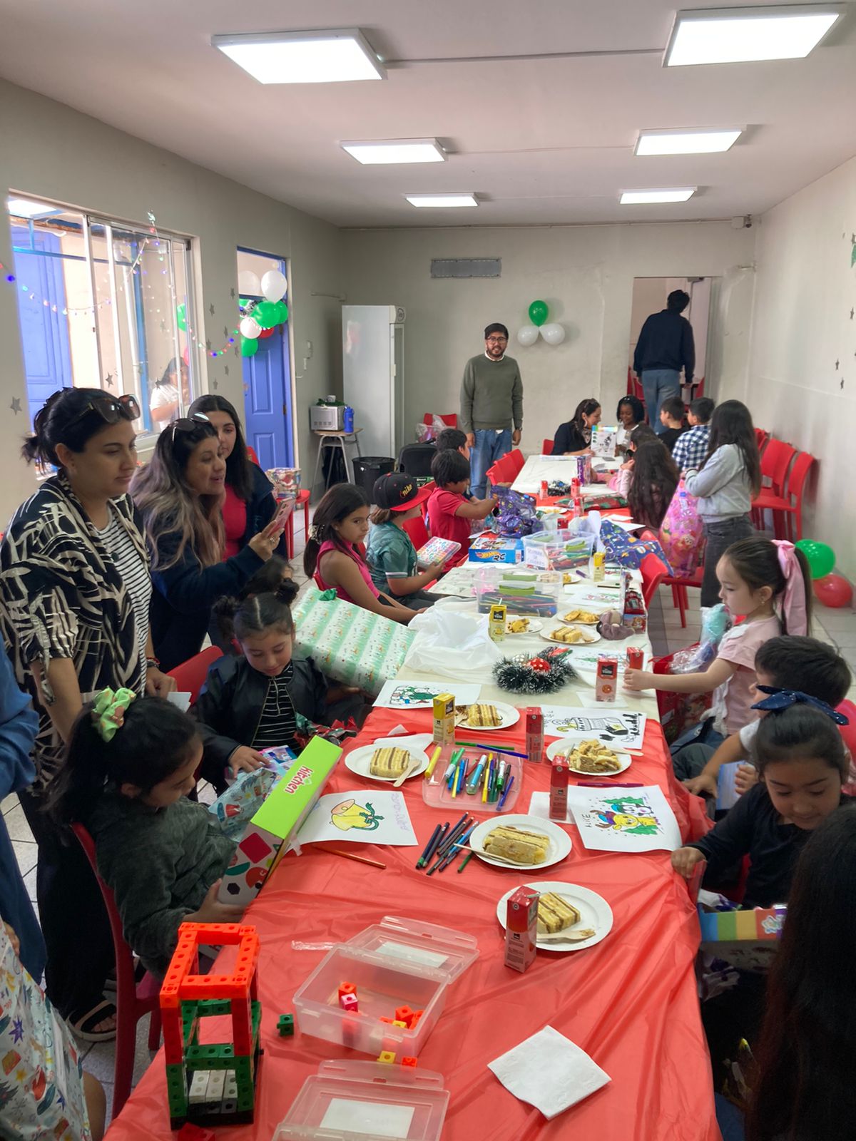 Durante la mañana, nos dividimos en cuatro servicios: Preparación de Canastas Navideñas, Celebración de Navidad para un grupo de niños y niñas de nuestro colegio, entrega de desayunos a hermanos y hermanas en situación de calle y otros prepararon un momento de compartir para el personal.