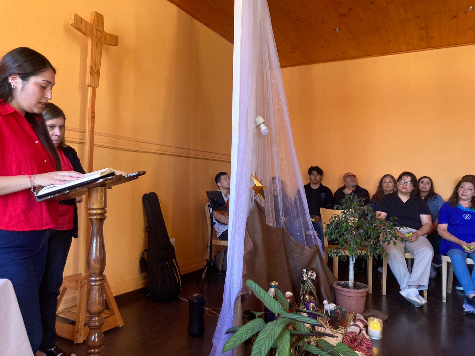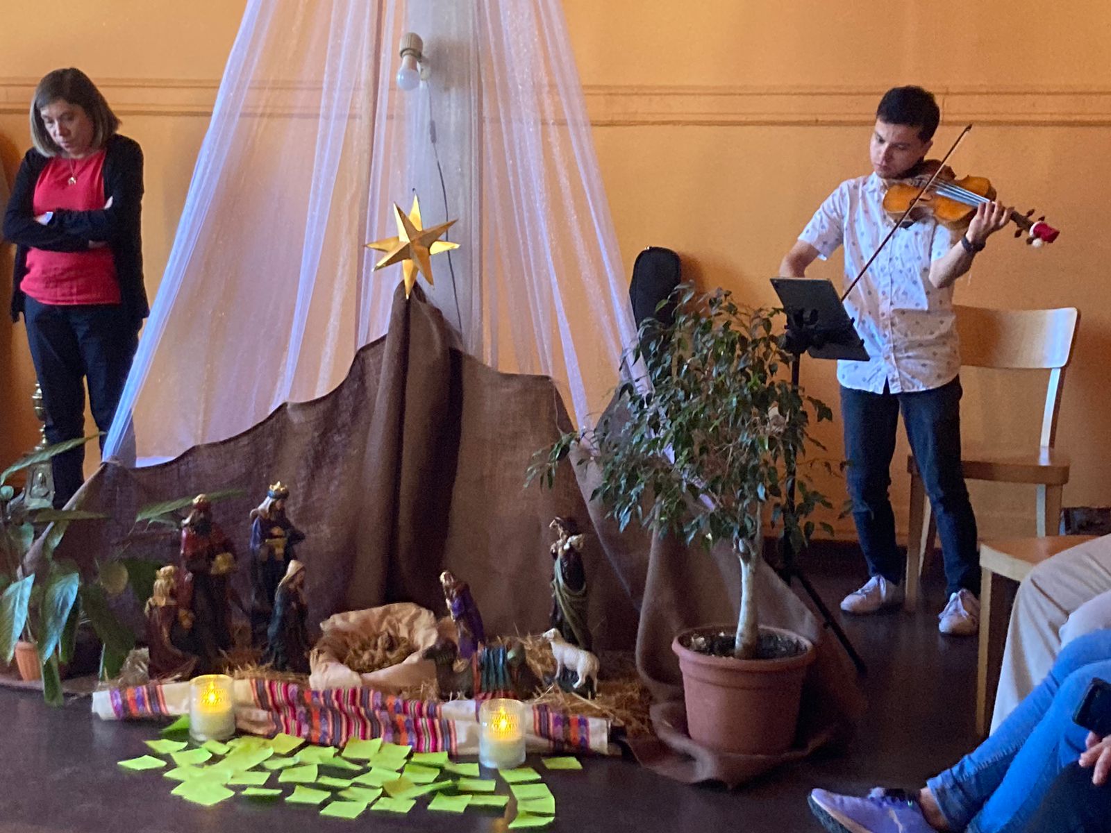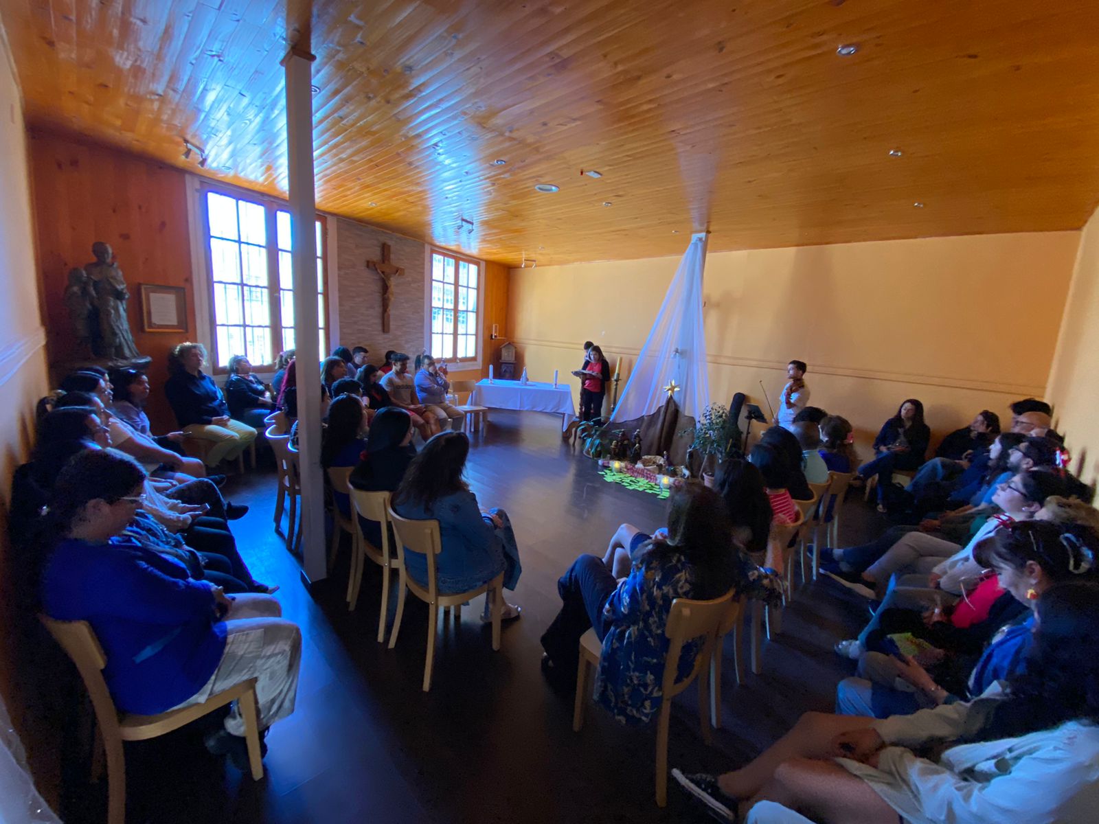 Antes del compartir, se vivió un momento especial en la Capilla, corazón de nuestra comunidad, en la que el padre Rodrigo reflexionó sobre el significado de este tiempo de Navidad; además, en un papel expresamos lo que le deseamos a nuestro colegio para el año que viene y pudimos deleitarnos con una villancicos interpretados en violín.