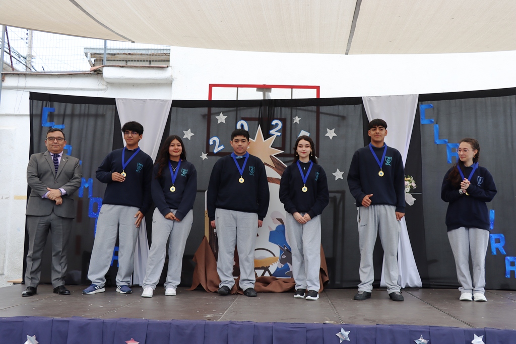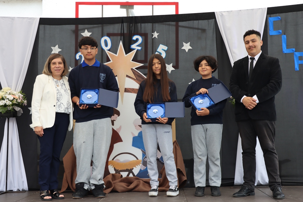 Recibieron esta distinción los estudiantes: Julieta Ignacia Villarroel Figueroa (1° Básico), Ignacia Paz Collío González (2° Básico), María Ignacia Ester Olmos Brito (3° Básico), Jean Paul Mella Araya (4° Básico), Salvador Vicente Arredondo Poblete (5° Básico), Benjamín Damián Sartori Molina (6° Básico), Camila Valentina Ferreira Uribe (7° Básico), Darianny Dayerlin Labrador Pernia (8° Básico), Amanda Paola Rojas Díaz (I Medio), Martín Daniel Calderón Carabelli (II Medio) y Belén Antonia Valle Alvarez (III Medio).
