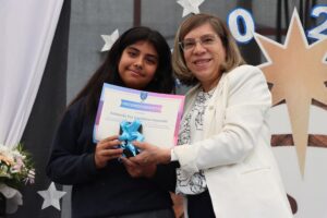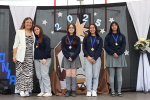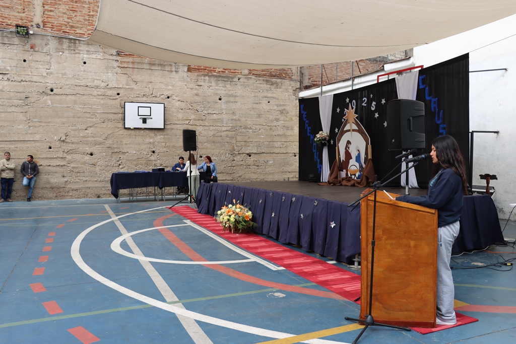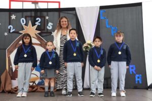 Amanda Rojas, representante del Centro de Estudiantes de nuestro colegio señaló que cada estudiante aporta de manera distinta a nuestra comunidad, algunos desde lo académico, otros desde lo valórico y otros desde el compañerismo fraterno. “Como estudiantes, este año hemos aprendido más que contenidos, hemos aprendido valores fundamentales que el colegio nos transmite día a día, enseñanzas que quedan con nosotros para siempre y nos ayudan a seguir creciendo como personas”. Además, resaltó que esta ceremonia es un recordatorio de que el trabajo constante vale la pena y que cada paso que dan los acerca a sus metas.