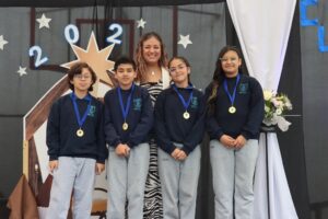 Estudiantes de 7° Básico: Lukas Benjamín Castillo Segovia, Ayelén Sophia Durán Ruiz, Camila Valentina Ferreira Uribe y Sophia Alejandra Salgado Rivas. Estudiante de 8° Básico: Leonela Anaís Araujo Cárcamo, Darianny Dayerlin Labrador Pernia, Isidora Catalina Péndola Contreras y Monserrat Anaís Vivar Aguilera.