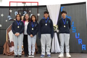 Estudiantes de I Medio: Layra Inés Carrasco Hernández, Máximo Paulo Díaz Cofré, Scarlett Belén Neumann Bustamante, Agustín Nataniel Emilio Puebla Silva, Amanda Paola Rojas Díaz y Lucas Alonso Veas Bustamante.