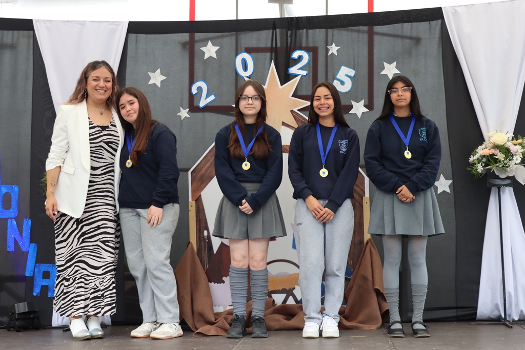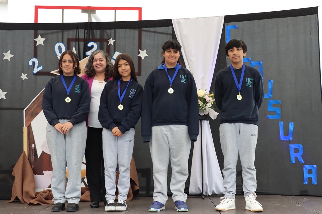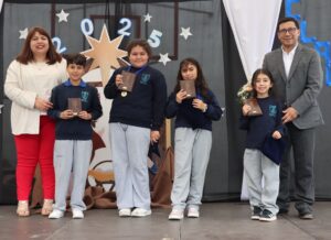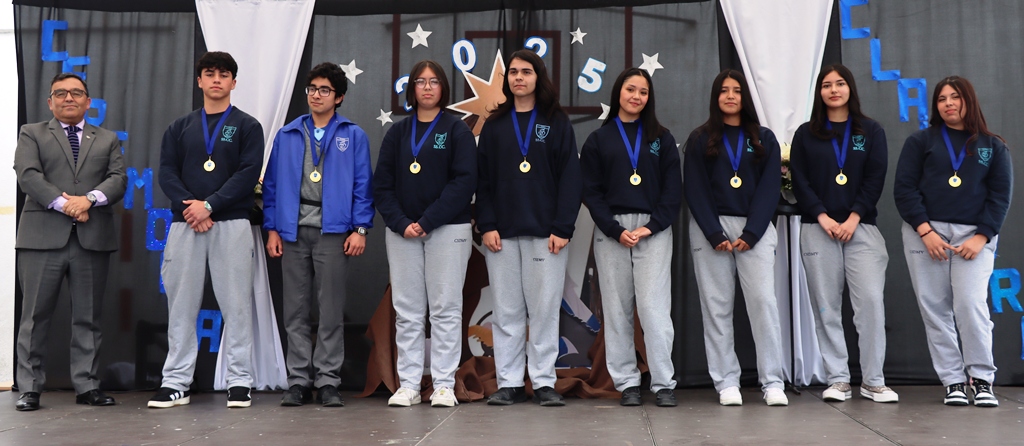 Los estudiantes premiados fueron: Amaranta Paz Rubilar Rojas (1° Básico), Isidora Paz Pérez López (2° Básico), Amanda Gabriela Inostroza Torres (3° Básico), Renata Victoria Alarcón Soto (4° Básico), Mía Paz Morgado Naranjo (5° Básico), Renato Antonio Valenzuela Varas (6° Básico), Camila Valentina Ferreira Uribe (7° Básico), Darianny Dayerlin Labrador Pernia (8° Básico), Vicente Guillermo Oyarce Labra (I Medio), Nicolás Abel Almonacid Morales (II Medio) y Belén Antonia Valle Alvarez (III Medio).