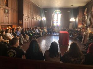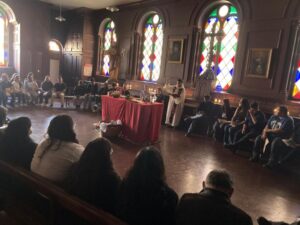 Nos acompañó el padre Rodrigo Quiroz ss.cc quien reflexionó sobre la Última Cena y nos motivó a que en estos días de Semana Santa podamos reflexionar sobre nuestra vida, nuestras preocupaciones, nuestro quehacer. “Tengan un momento de pausa, pensar en sus vidas, en sus familias, su vocación y el servicio que realizan en nuestro colegio”.