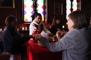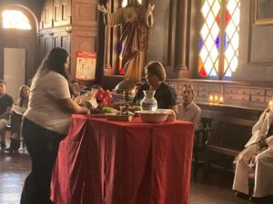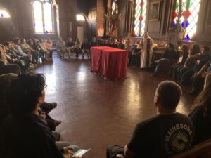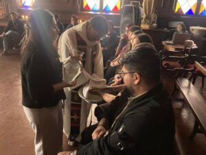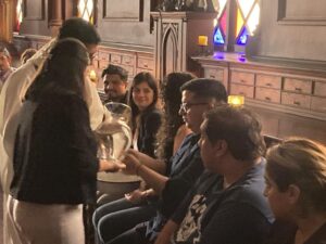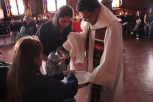Uno de los signos que se hizo fue el gesto de lavarse las manos mientras meditábamos sobre qué cosa queríamos que Jesús nos limpie. También compartimos el pan y el vino. Se finalizó con la entrega de una tortilla y una oración para que los compartiéramos con nuestras familias.
