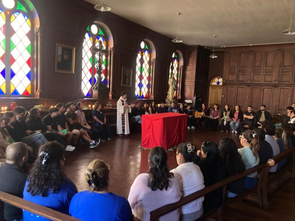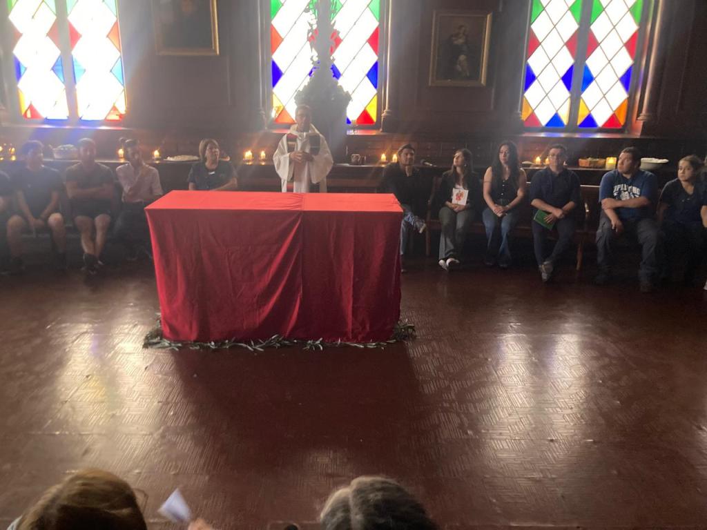 Nos acompañó el padre Rodrigo Quiroz ss.cc quien reflexionó sobre la Última Cena y nos motivó a que en estos días de Semana Santa podamos reflexionar sobre nuestra vida, nuestras preocupaciones, nuestro quehacer. “Tengan un momento de pausa, pensar en sus vidas, en sus familias, su vocación y el servicio que realizan en nuestro colegio”.