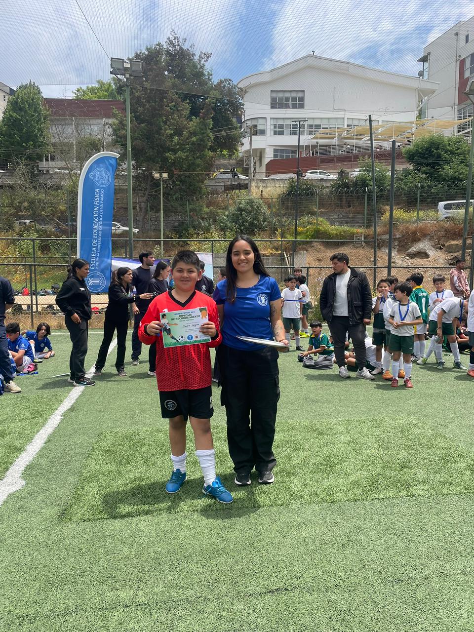 El jueves 20 de noviembre, algunos de nuestros estudiantes de 3° a 6° Básico participaron en el Festival de Fútbol Recreativo–Formativo organizado por la carrera de Educación Física de la Pontificia Universidad Católica de Valparaíso. Durante la actividad, cada uno de los estudiantes representó al colegio de muy buena manera, demostrando entusiasmo, compromiso y un excelente comportamiento dentro y fuera de la cancha.