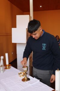 El estudiante de IV Medio Joseph Díaz recibió el sacramento de Bautismo. En tanto, el sacramento de la Eucaristía fue recibido por los estudiantes: Arón Briceño de III Medio; y, Amanda González, Agustina Suárez, Scarlet Mancilla, Samuel Vásquez, Mateo Silva y Joseph Díaz de IV Medio.