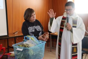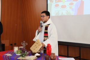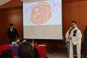 En ella, se les habló del relato de la última cena de Jesús con sus discípulos y se les motivó a que en sus hogares se preparen para vivir este acontecimiento compartiendo el pan con la familia. El padre Rodrigo reflexionó sobre el significado del pan para nosotros, “Si compartimos el Pan de Vida, construimos la familia cristiana. Si repartimos el Pan de la Vida, estamos regalando el mejor de los alimentos”.