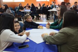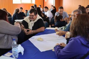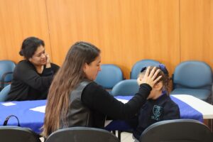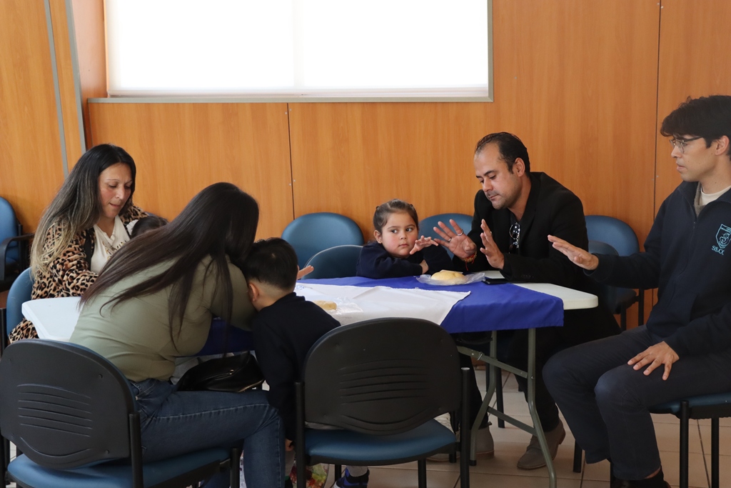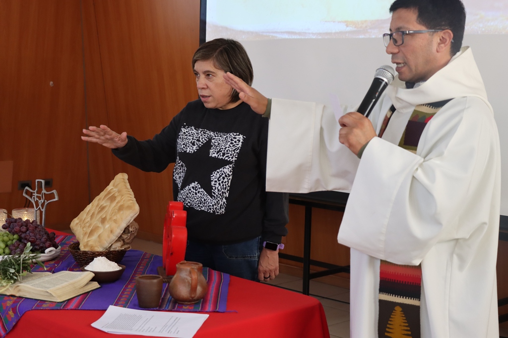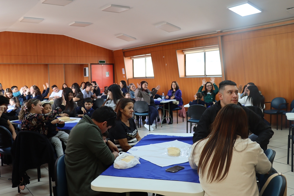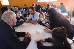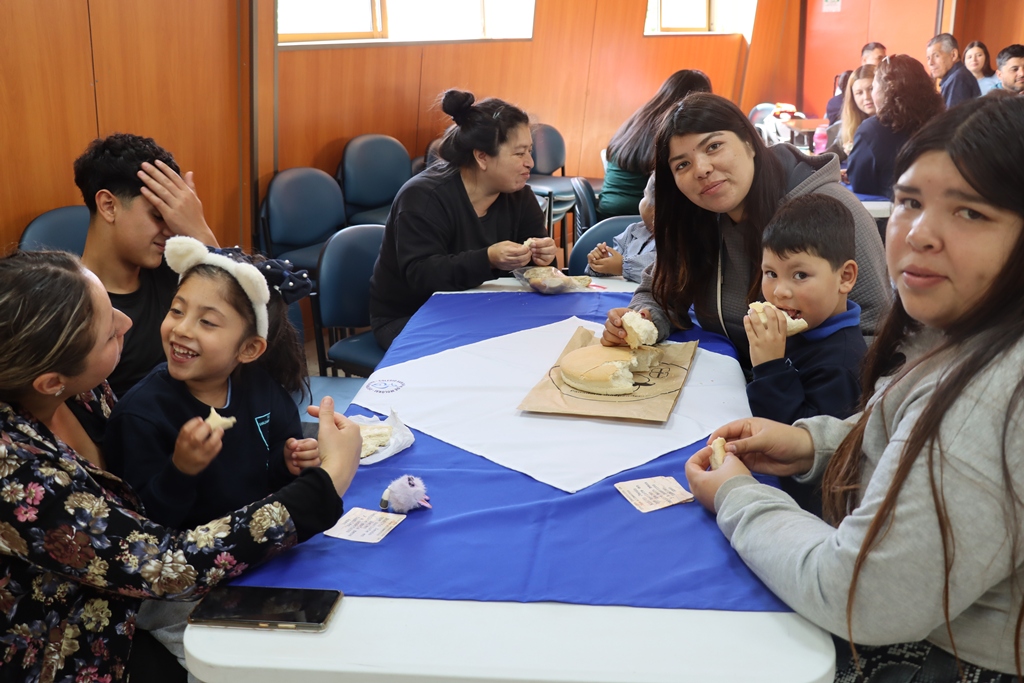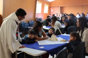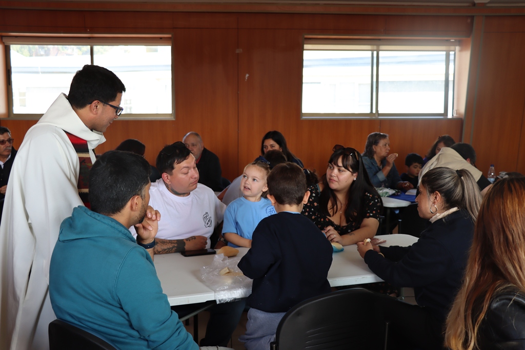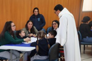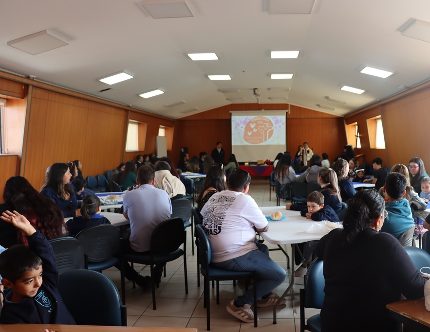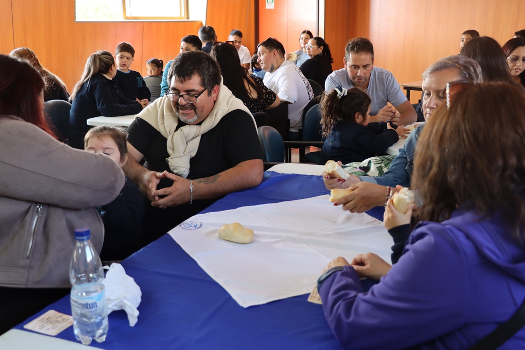 Cada mamá, papá, abuela, tía que acompañó a un niño y niña de Pre Kínder, después de la bendición del pan, lo repartió diciéndole qué le deseaba; luego le hicieron la señal de la cruz en la frente. Se les entregó una oración para el momento de bendecir los alimentos y se les invitó a rezarla en sus hogares.