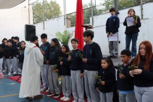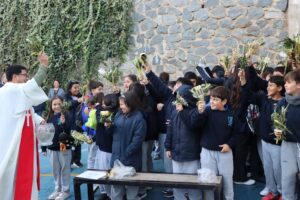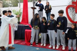 Un estudiante por cada curso recibió un ramito que se mantendrá en su sala durante un año como recordatorio de que Jesús quiere caminar con nosotros todos los días. Luego, el padre bendijo los ramitos de todos los presentes. Que este signo nos ayude a vivir esta Semana Santa siendo capaces de cumplir con nuestro lema de Cuaresma: Escuchar, Perdonar, Incluir y Servir.
