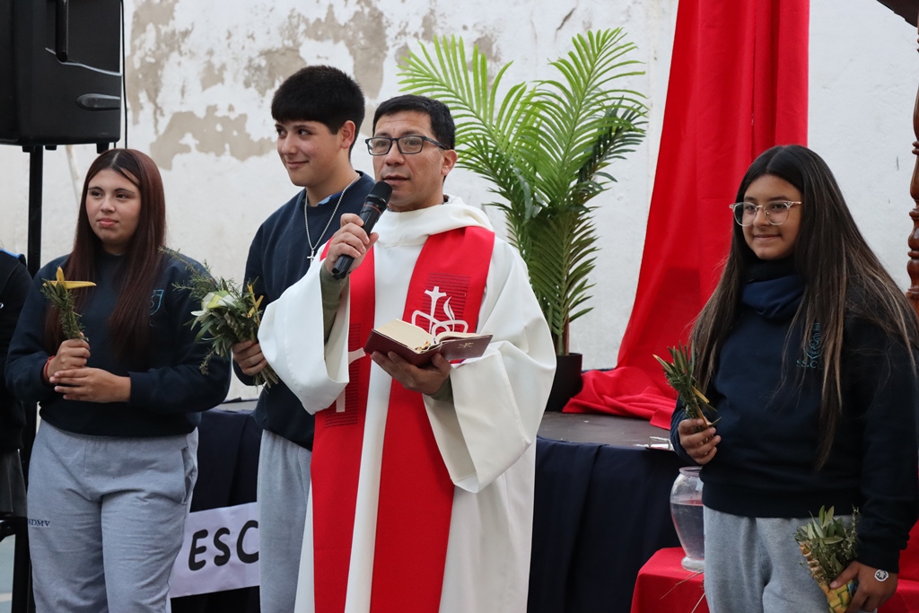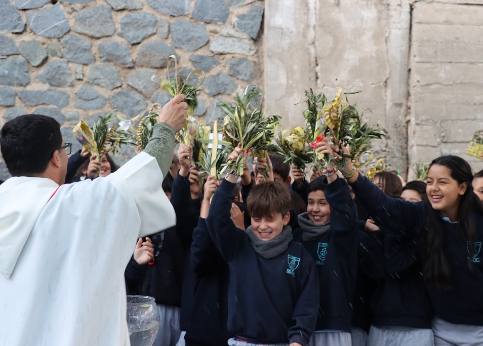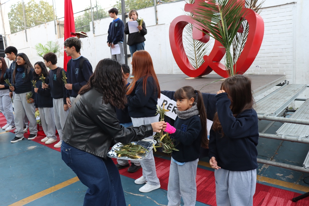 Un estudiante por cada curso recibió un ramito que se mantendrá en su sala durante un año como recordatorio de que Jesús quiere caminar con nosotros todos los días. Luego, el padre bendijo los ramitos de todos los presentes. Que este signo nos ayude a vivir esta Semana Santa siendo capaces de cumplir con nuestro lema de Cuaresma: Escuchar, Perdonar, Incluir y Servir.