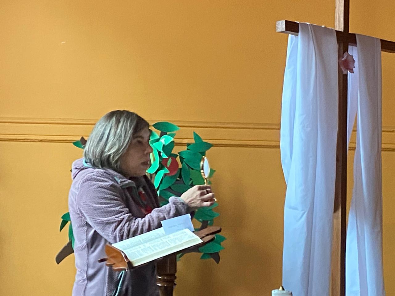A continuación, el profesor Diego Dip, leyó el Evangelio en el que se relató la enseñanza de Jesús “Dejad que los niños vengan a mí”. Trinidad les comentó que este texto nos invita a reflexionar sobre la importancia de los niños. “Ustedes son privilegiados porque son los preferidos de Jesús”.