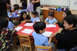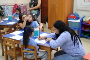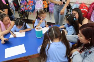 En un primer momento el Padre Rodrigo, les habló a los papás y mamás y les dijo que estén llenos de amor para mirar y corregir a sus hijos e hijas. “Un buen padre y una buena madre corrigen con ternura y amor”. Además, los invitó a tomar las manos de sus hijos e hijas para realizar una bendición especial por este importante paso que dan en el ámbito educativo.