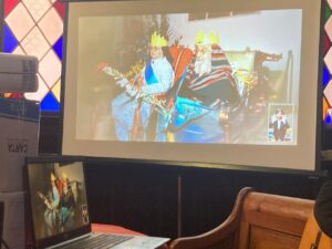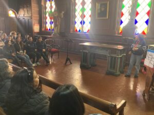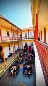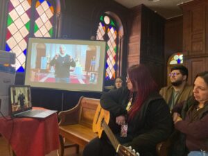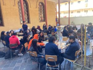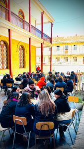 La jornada se inició con un almuerzo comunitario en el patio de la Iglesia de los Sagrados Corazones de Valparaíso. Luego, en la sacristía, vimos un video con testimonios sobre el padre Esteban. Al salir, pudimos apreciar fotografías de encuentros anteriores con motivo del natalicio del padre Gumucio.
