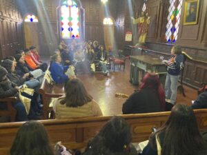 La tarde continuó con un Encuentro Fraterno, en el que por medio de un material sobre el padre Esteban pudimos conocer más de él, de su pensamiento y estilo de vida. A continuación, hicimos un trabajo manual con arpilleras recordando lo visto en el video sobre el P. Gumucio. El Consejo finalizó con un momento de oración y gratitud en la sacristía de la Iglesia.