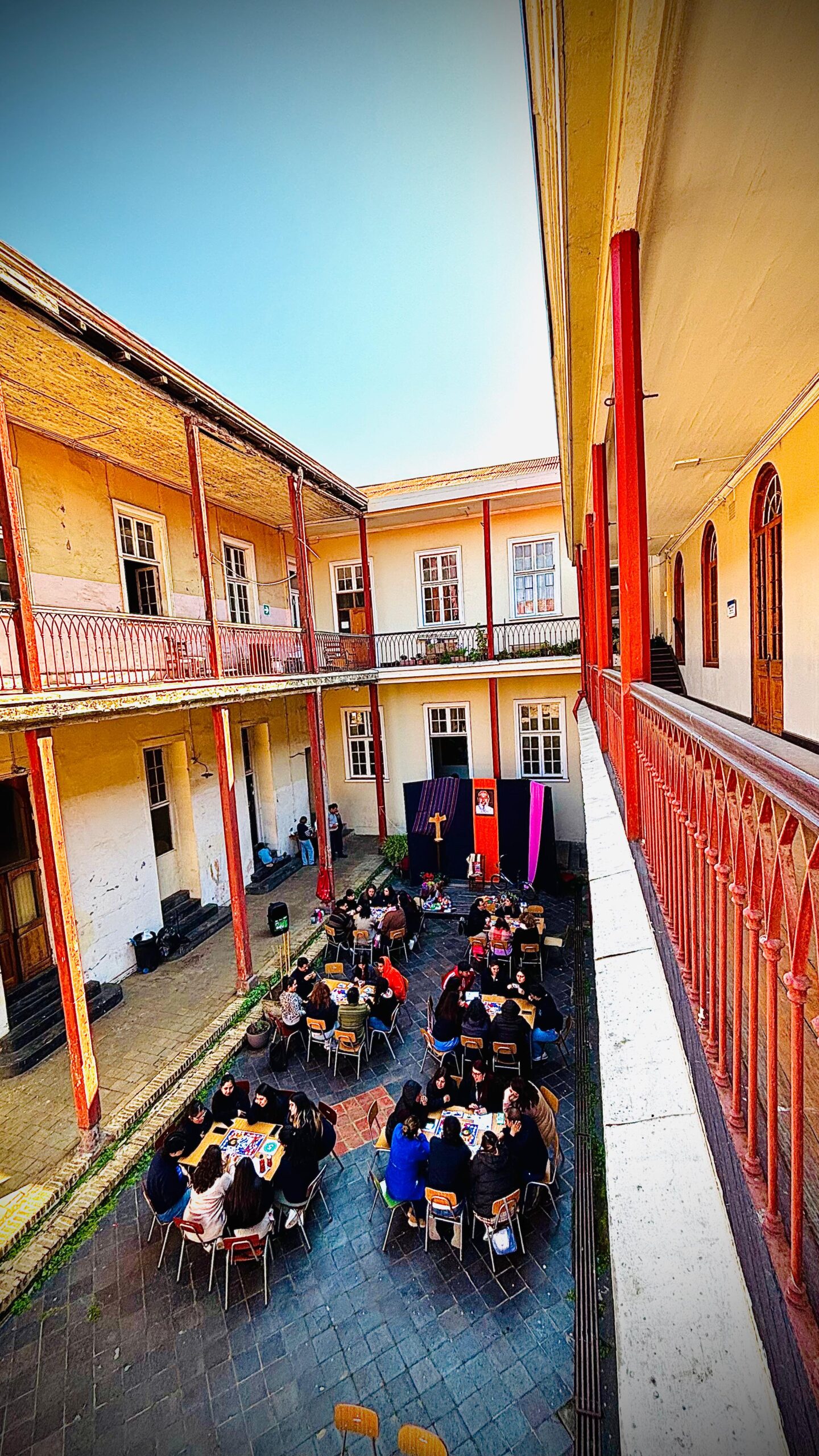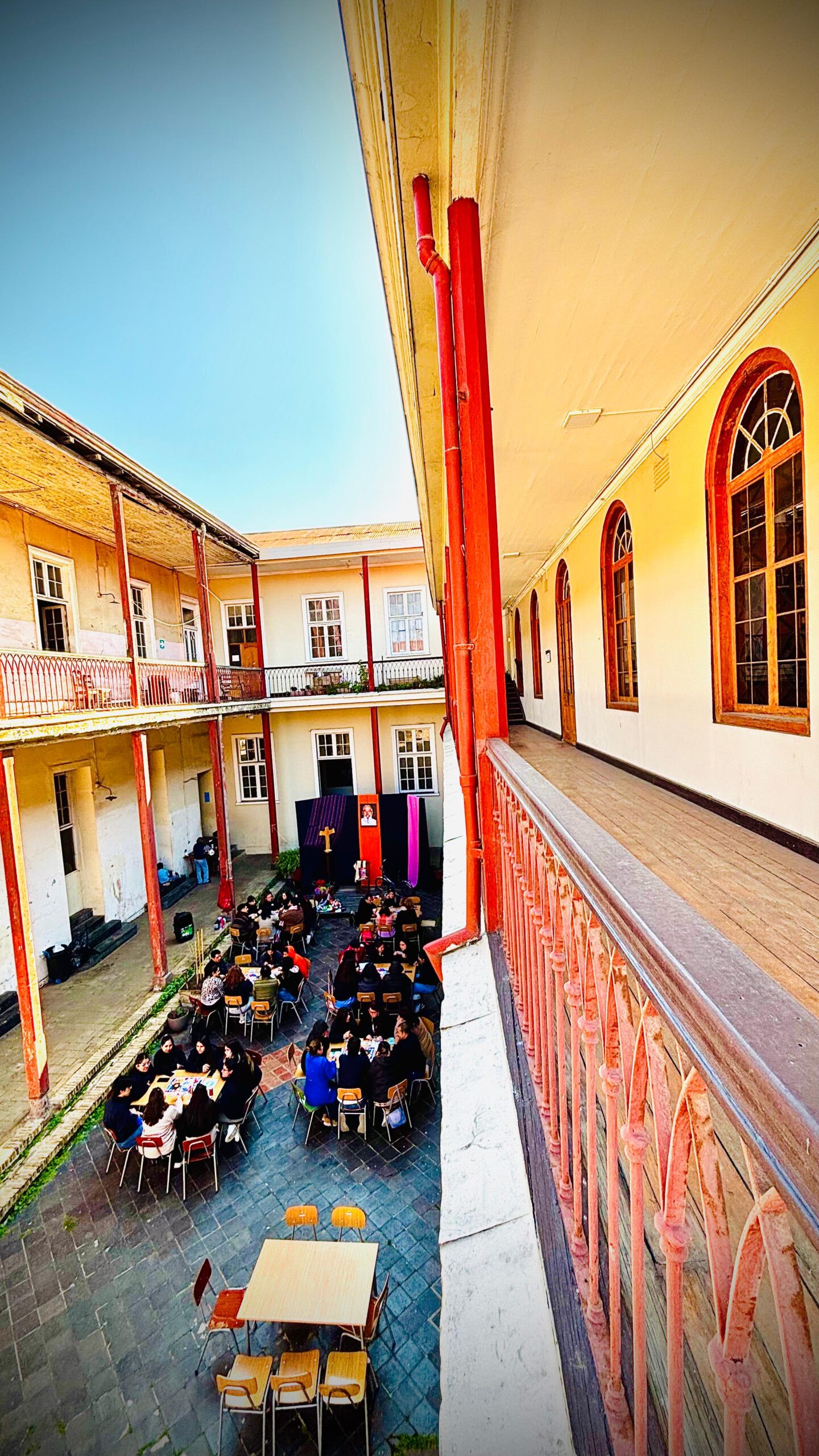 La jornada se inició con un almuerzo comunitario en el patio de la Iglesia de los Sagrados Corazones de Valparaíso. Luego, en la sacristía, vimos un video con testimonios sobre el padre Esteban. Al salir, pudimos apreciar fotografías de encuentros anteriores con motivo del natalicio del padre Gumucio.