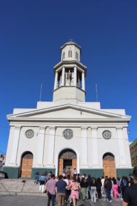 A continuación, iniciamos el recorrido histórico por lugares significativos en nuestra región para la Congregación de los SS.CC. La primera parada fue en la Parroquia La Matriz ya que el 13 de mayo de 1834, llegaron tres sacerdotes y un hermano a Valparaíso siendo recibidos por el sacerdote español franciscano Andrés Caro en el sector de La Matriz. El primer sacerdote de nuestra congregación que llegó a Valparaíso fue el padre Crisóstomo Liausu.