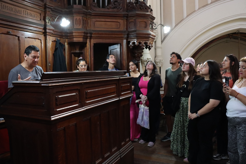 Luego, nos trasladamos a la Iglesia de los Sagrados Corazones, inaugurada el 6 de febrero del año 1854 y declarada como Monumento Histórico el año 2003. En ella, efectuamos un recorrido por la Iglesia mientras se nos entregó información sobre sus diferentes espacios. La visita concluyó escuchando diversas piezas del órgano Cavaillé-Coll.