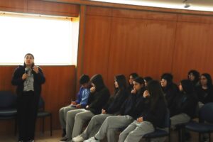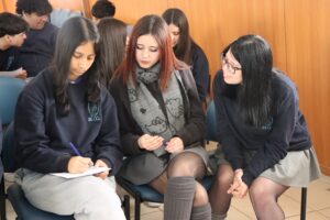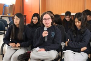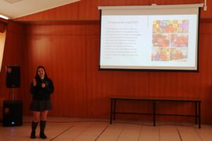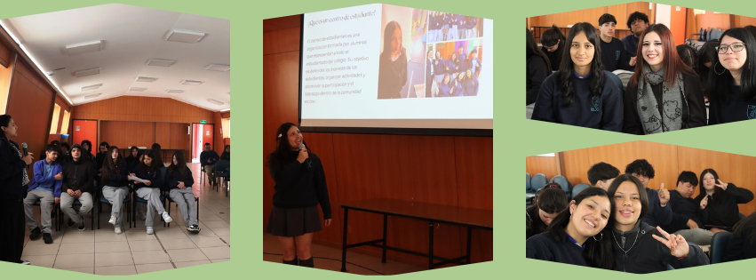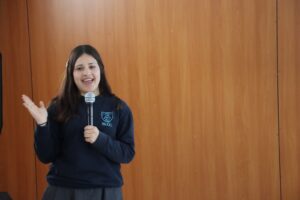 La Presidenta del CEE, Shiro Gallardo, les habló de su experiencia como Presidenta en el Centro de Estudiantes, las diversas actividades que han realizado en nuestro colegio y los encuentros que le ha tocado participar y mostrar su liderazgo como; Congreso Juvenil SS.CC., Un viaje por la cultura y la fe chilota, y la Confraternidad Cultural.