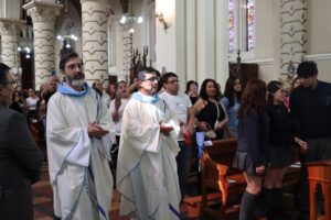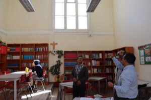 Consultado por sus impresiones sobre esta visita, el padre Sandro Mancilla nos señaló que se sintió muy acogido. “Pude entrar sin grandes preámbulos ni presentaciones, eso habla de una comunidad que sabe acoger, entrar en relación y eso me hace pensar en una comunidad que está sana sin grandes quiebres estructurales, sin grandes problemas más de fondo y eso. Percibo que se está haciendo un trabajo que es bien complejo, soy consciente de lo complejo que está hoy en día la educación en el país y más todavía con el nivel de vulnerabilidad de los y las estudiantes. Dentro de ese marco tengo una buena impresión sobre lo que se está haciendo y con los recursos que hay”. Sobre la presencia de la Congregación en nuestro colegio, comentó que se ha ido consolidando con el tiempo desde los tiempos del padre Sergio Pérez de Arce, la presencia del padre Ricardo y ahora el padre Rodrigo le da un plus, ya que al ser profesor, tiene experiencia en aula, en otras comunidades escolares y eso le da una característica nueva a su presencia que puede ayudar.