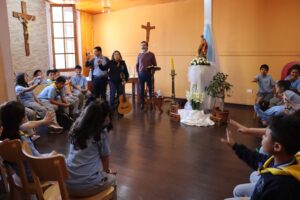 También nos habló de lo vocacional. “No se trata solo de formar a la persona individualmente con lo que quiere hacer con sus sueños sino que cómo aprendemos a ponernos al servicio de una sociedad que nos necesita, cómo aportamos, cuál es el aporte que nuestros estudiantes pueden dar a partir de la experiencia que tienen acá para aportar. Lo vocacional para aportar en la sociedad y en la Iglesia y lo último, el tema espiritual. Si no alimentamos la espiritualidad, nos fragilizamos, perdemos una dimensión importantísima de la vida humana y eso hay que cuidarlo también, hay que formarse, darle espacio, la vida interior, la presencia de Dios, la fuerza interior, la fe son elementos que nos ayudan a vivir más plenamente como seres humanos”.
