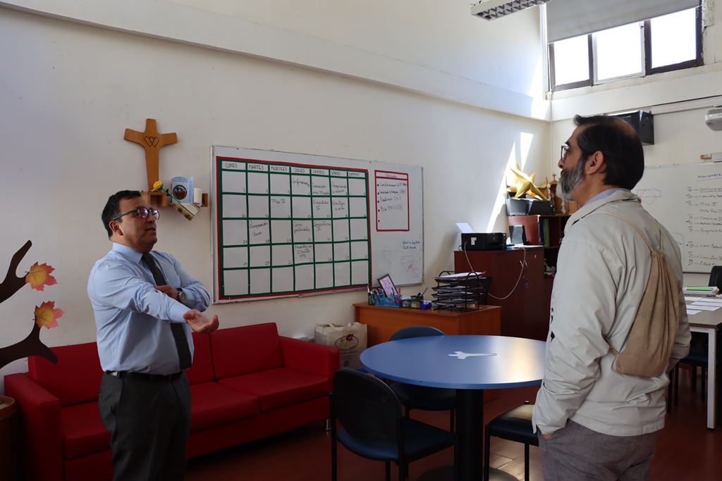 Consultado por sus impresiones sobre esta visita, el padre Sandro Mancilla nos señaló que se sintió muy acogido. “Pude entrar sin grandes preámbulos ni presentaciones, eso habla de una comunidad que sabe acoger, entrar en relación y eso me hace pensar en una comunidad que está sana sin grandes quiebres estructurales, sin grandes problemas más de fondo y eso. Percibo que se está haciendo un trabajo que es bien complejo, soy consciente de lo complejo que está hoy en día la educación en el país y más todavía con el nivel de vulnerabilidad de los y las estudiantes. Dentro de ese marco tengo una buena impresión sobre lo que se está haciendo y con los recursos que hay”. Sobre la presencia de la Congregación en nuestro colegio, comentó que se ha ido consolidando con el tiempo desde los tiempos del padre Sergio Pérez de Arce, la presencia del padre Ricardo y ahora el padre Rodrigo le da un plus, ya que al ser profesor, tiene experiencia en aula, en otras comunidades escolares y eso le da una característica nueva a su presencia que puede ayudar.