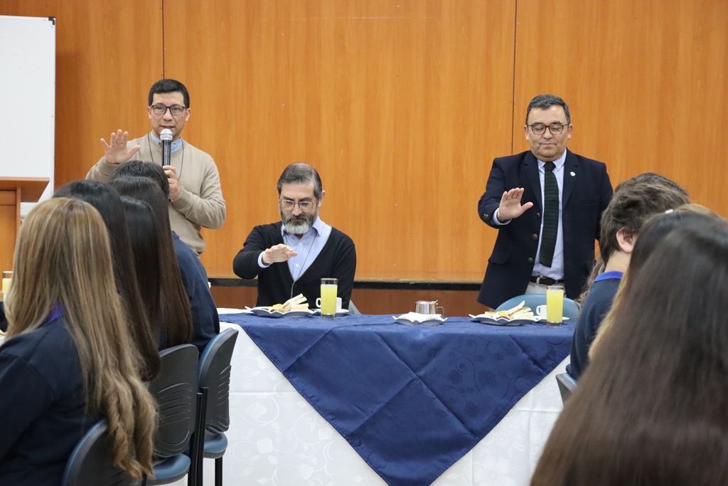 También nos habló de lo vocacional. “No se trata solo de formar a la persona individualmente con lo que quiere hacer con sus sueños sino que cómo aprendemos a ponernos al servicio de una sociedad que nos necesita, cómo aportamos, cuál es el aporte que nuestros estudiantes pueden dar a partir de la experiencia que tienen acá para aportar. Lo vocacional para aportar en la sociedad y en la Iglesia y lo último, el tema espiritual. Si no alimentamos la espiritualidad, nos fragilizamos, perdemos una dimensión importantísima de la vida humana y eso hay que cuidarlo también, hay que formarse, darle espacio, la vida interior, la presencia de Dios, la fuerza interior, la fe son elementos que nos ayudan a vivir más plenamente como seres humanos”.